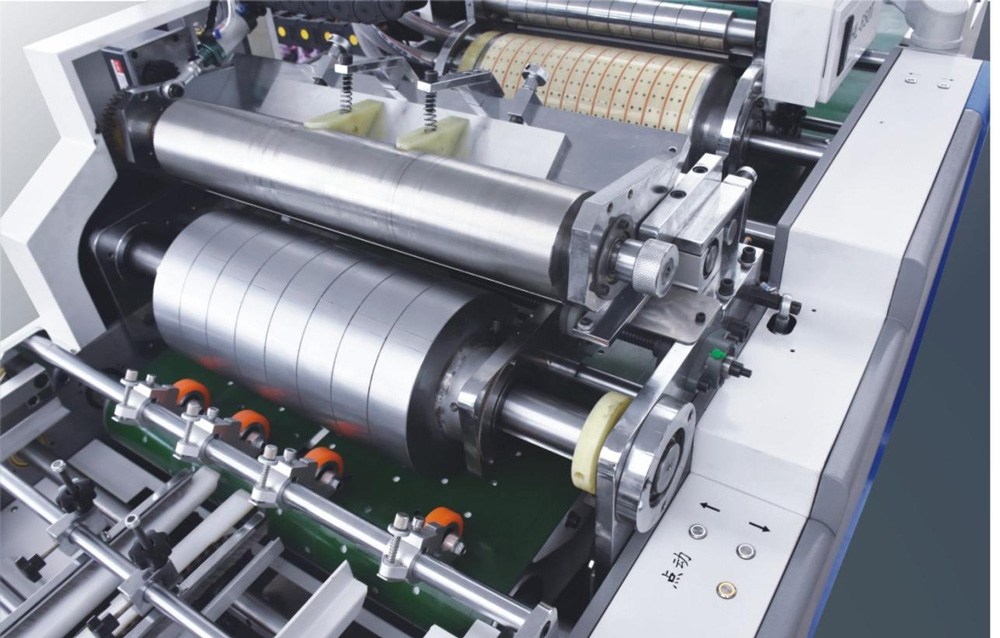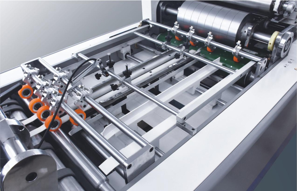 4、涂膠部:涂膠滾筒的橫向于縱向分別由伺服電機(jī)驅(qū)動(dòng),可不停機(jī)直接進(jìn)行雙向調(diào)節(jié),涂膠部還具備空張避膠功能,避免膠水接觸到皮帶,減少因?yàn)榭諒埗l繁停機(jī)清洗皮帶的麻煩。