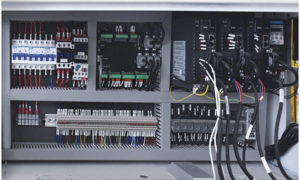 8、電氣系統(tǒng):整機(jī)采用全伺服運(yùn)動(dòng)控制,各種電氣元件、檢測開關(guān)均采用日本、臺(tái)灣、法國、德國等公司產(chǎn)品。